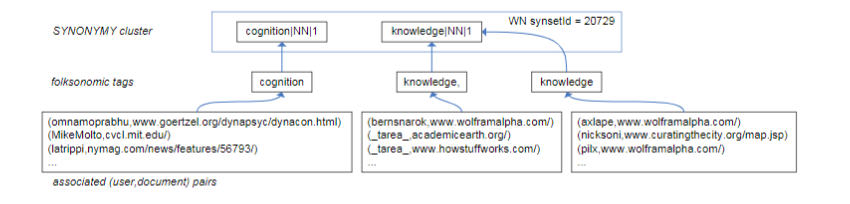 At the folksonomy level, semantic relations, such as ISA, PARTWHOLE (PW), or SYNONYMY(SYN), link the tags, inducing the folksonomy’s rich semantic structure. Thus, folksonomies become rich semantic graphs whose links are the semantic relations connecting the folksonomic tags, which con-stitute the nodes of the representation.
